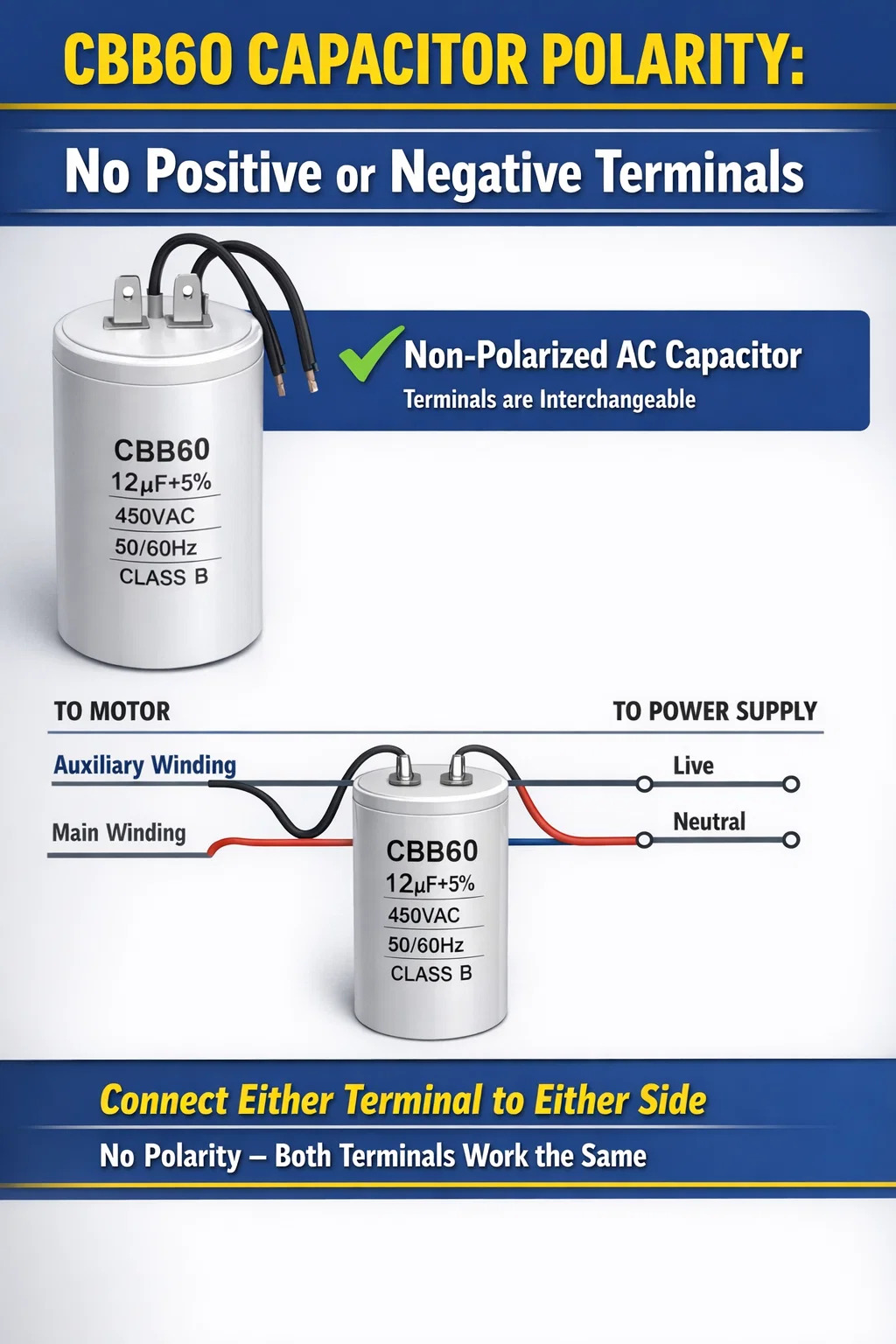 CBB60 Kondansatörlerin Neden Pozitif veya Negatif Terminali Yok
